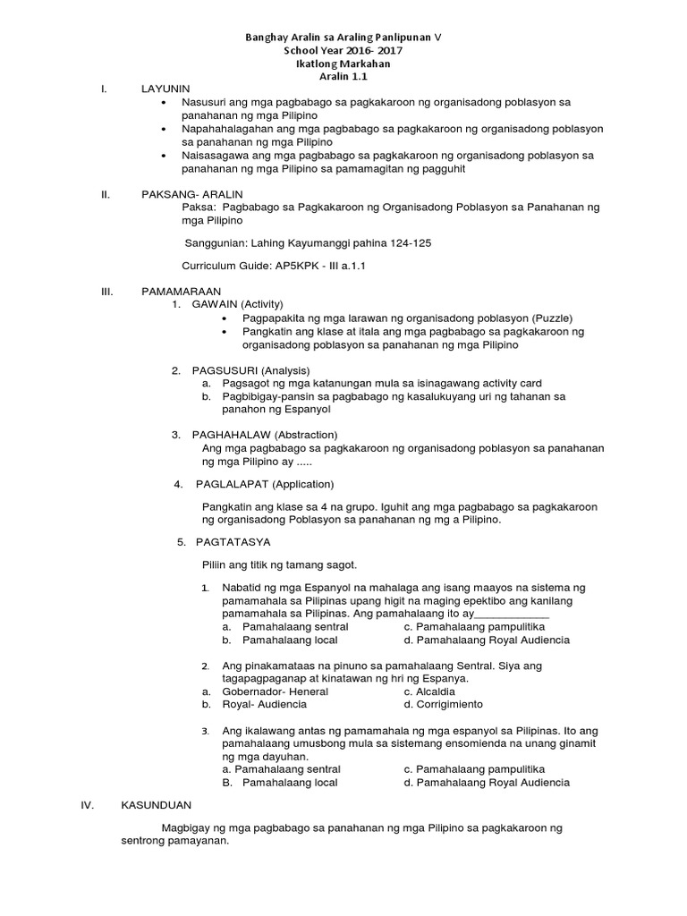 View UNANG MARKAHAN- Aralin 1doc from TEACHER ED 009398484 at University of St. Banghay Aralin sa Araling Panlipunan 9 Unang Markahan. Pamantayan sa Pagganap Ang mga mag-aaral ay naisasabuhay ang pag-unawa sa.
